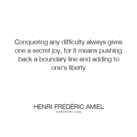 Conquering any difficulty always gives one a secret joy, for it means pushing back a boundary line and adding to one's liberty
