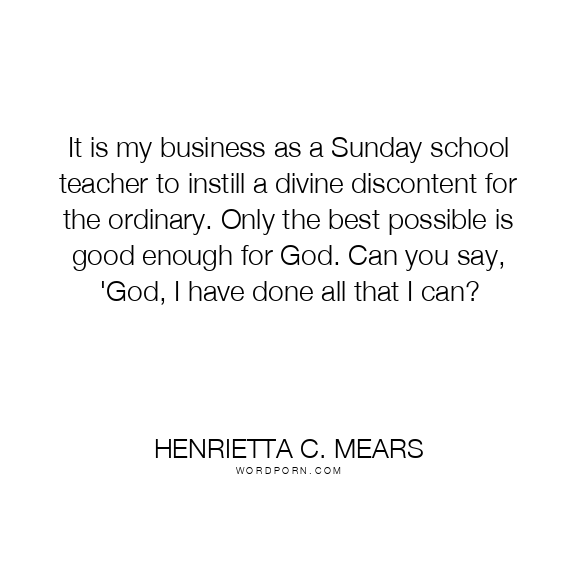 It is my business as a Sunday school teacher to instill a divine discontent for the ordinary. Only the best possible is good enough for God. Can you say, 'God, I have done all that I can?