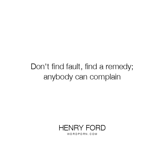 Don't find fault, find a remedy; anybody can complain