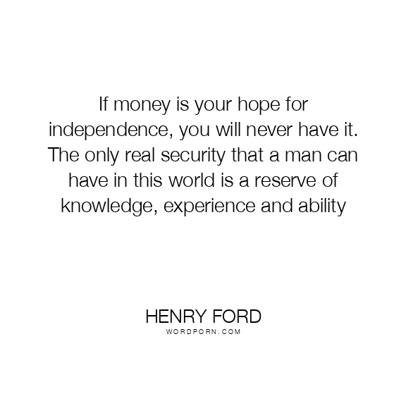 If money is your hope for independence, you will never have it. The only real security that a man can have in this world is a reserve of knowledge, experience and ability