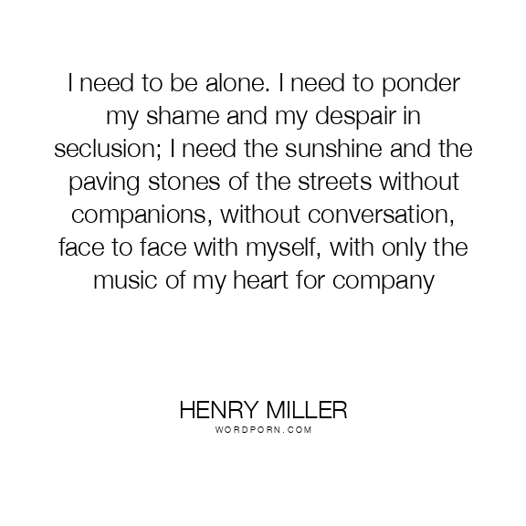 I need to be alone. I need to ponder my shame and my despair in seclusion; I need the sunshine and the paving stones of the streets without companions, without conversation, face to face with myself, with only the music of my heart for company