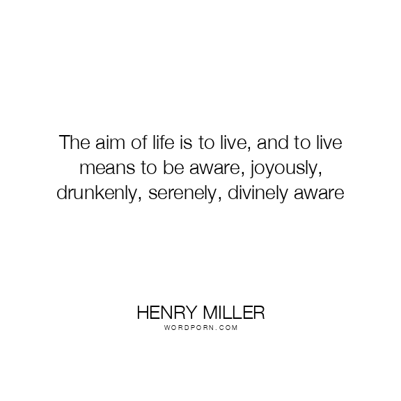 The aim of life is to live, and to live means to be aware, joyously, drunkenly, serenely, divinely aware