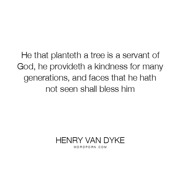 He that planteth a tree is a servant of God, he provideth a kindness for many generations, and faces that he hath not seen shall bless him
