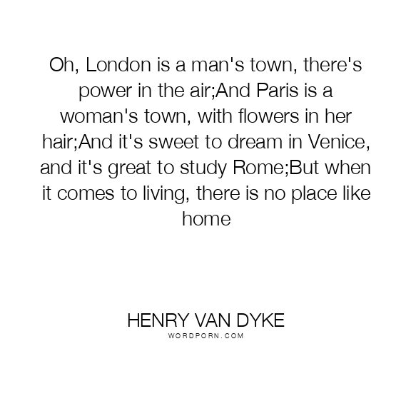 Oh, London is a man's town, there's power in the air;And Paris is a woman's town, with flowers in her hair;And it's sweet to dream in Venice, and it's great to study Rome;But when it comes to living, there is no place like home