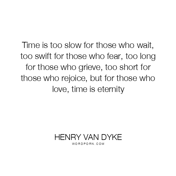 Time is too slow for those who wait, too swift for those who fear, too long for those who grieve, too short for those who rejoice, but for those who love, time is eternity