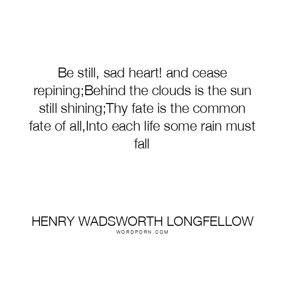 Be still, sad heart! and cease repining;Behind the clouds is the sun still shining;Thy fate is the common fate of all,Into each life some rain must fall