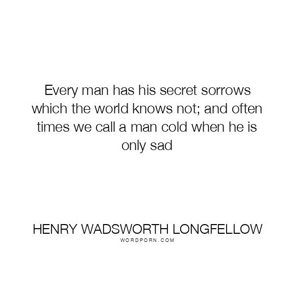 Every man has his secret sorrows which the world knows not; and often times we call a man cold when he is only sad
