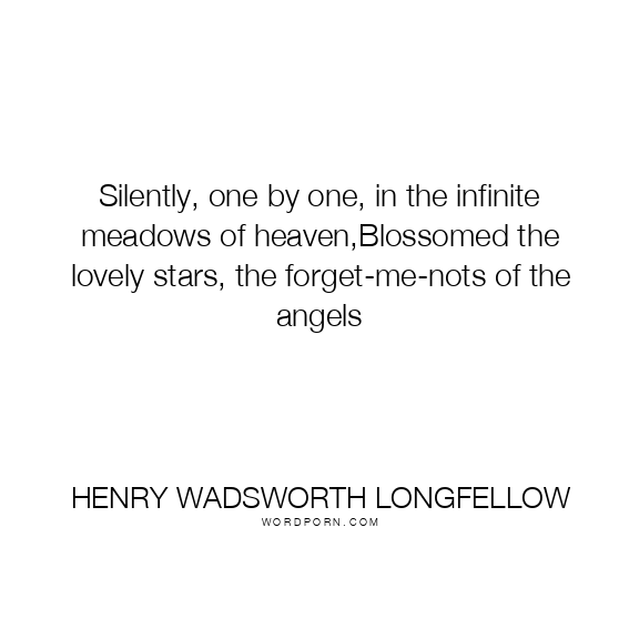 Silently, one by one, in the infinite meadows of heaven,Blossomed the lovely stars, the forget-me-nots of the angels