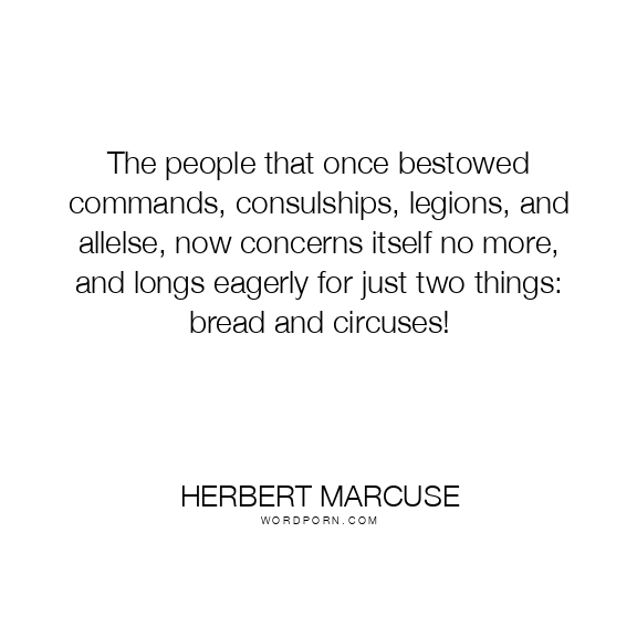 The people that once bestowed commands, consulships, legions, and allelse, now concerns itself no more, and longs eagerly for just two things: bread and circuses!