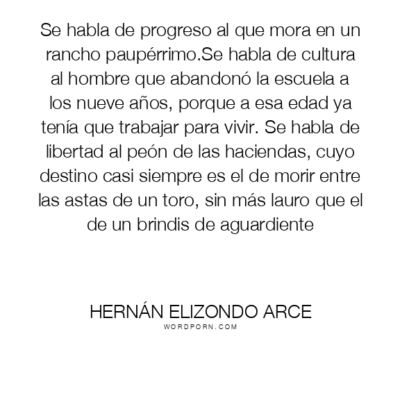 Se habla de progreso al que mora en un rancho paupérrimo.Se habla de cultura al hombre que abandonó la escuela a los nueve años, porque a esa edad ya tenía que trabajar para vivir. Se habla de libertad al peón de las haciendas, cuyo destino casi siempre es el de morir entre las astas de un toro, sin más lauro que el de un brindis de aguardiente