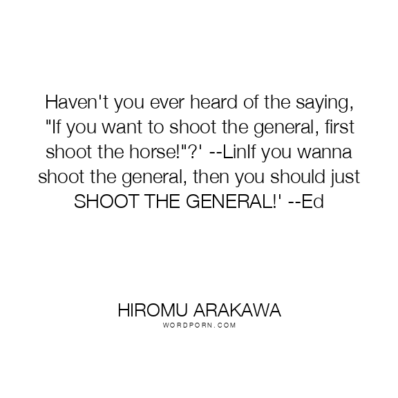 Haven't you ever heard of the saying, "If you want to shoot the general, first shoot the horse!"?' --LinIf you wanna shoot the general, then you should just SHOOT THE GENERAL!' --Ed