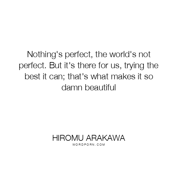 Nothing's perfect, the world's not perfect. But it's there for us, trying the best it can; that's what makes it so damn beautiful