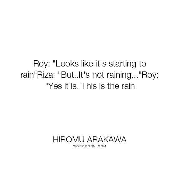 Roy: "Looks like it's starting to rain"Riza: "But..It's not raining..."Roy: "Yes it is. This is the rain