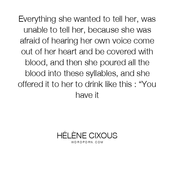 Everything she wanted to tell her, was unable to tell her, because she was afraid of hearing her own voice come out of her heart and be covered with blood, and then she poured all the blood into these syllables, and she offered it to her to drink like this : “You have it