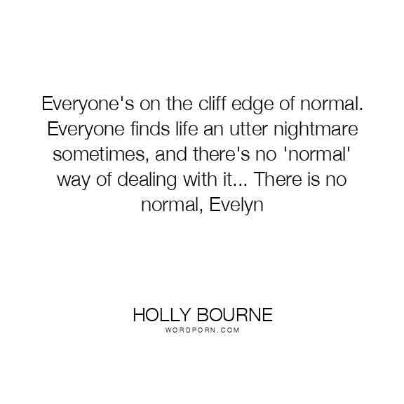 Everyone's on the cliff edge of normal. Everyone finds life an utter nightmare sometimes, and there's no 'normal' way of dealing with it... There is no normal, Evelyn