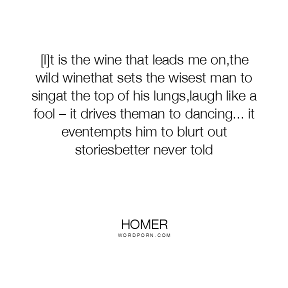 [I]t is the wine that leads me on,the wild winethat sets the wisest man to singat the top of his lungs,laugh like a fool – it drives theman to dancing... it eventempts him to blurt out storiesbetter never told
