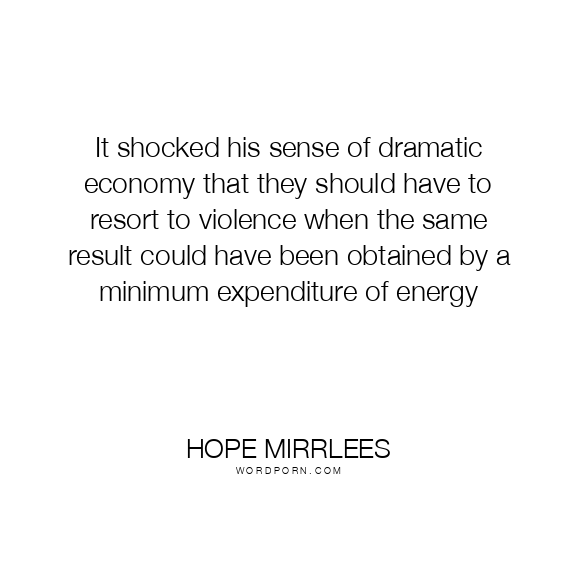 It shocked his sense of dramatic economy that they should have to resort to violence when the same result could have been obtained by a minimum expenditure of energy