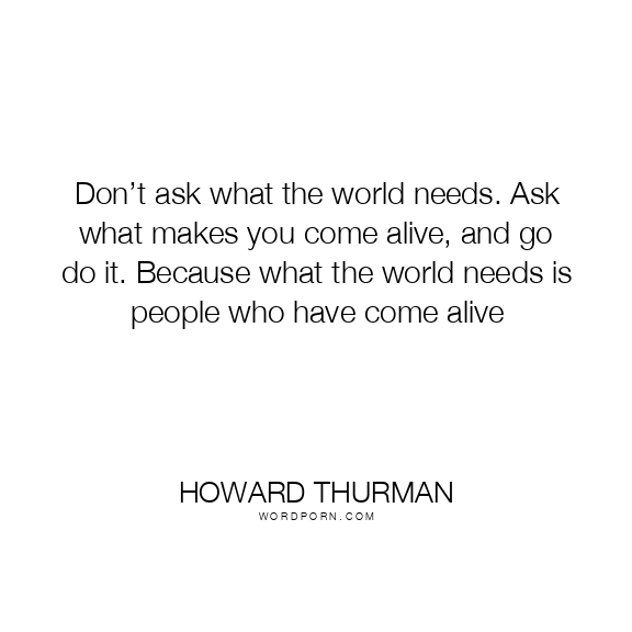 Don’t ask what the world needs. Ask what makes you come alive, and go do it. Because what the world needs is people who have come alive