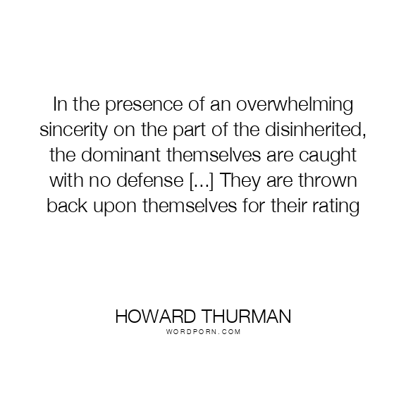 In the presence of an overwhelming sincerity on the part of the disinherited, the dominant themselves are caught with no defense [...] They are thrown back upon themselves for their rating