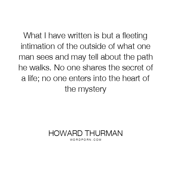 What I have written is but a fleeting intimation of the outside of what one man sees and may tell about the path he walks. No one shares the secret of a life; no one enters into the heart of the mystery