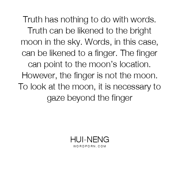 Truth has nothing to do with words. Truth can be likened to the bright moon in the sky. Words, in this case, can be likened to a finger. The finger can point to the moon’s location. However, the finger is not the moon. To look at the moon, it is necessary to gaze beyond the finger