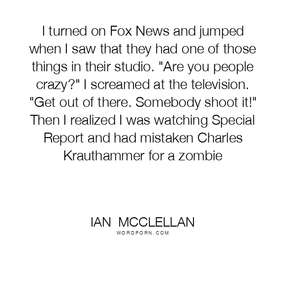 I turned on Fox News and jumped when I saw that they had one of those things in their studio. "Are you people crazy?" I screamed at the television. "Get out of there. Somebody shoot it!" Then I realized I was watching Special Report and had mistaken Charles Krauthammer for a zombie