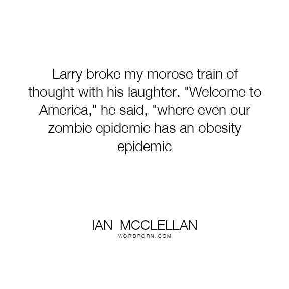 Larry broke my morose train of thought with his laughter. "Welcome to America," he said, "where even our zombie epidemic has an obesity epidemic