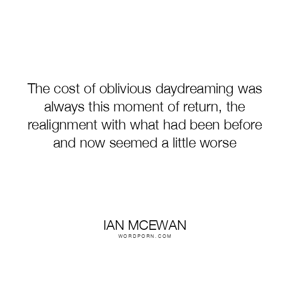 The cost of oblivious daydreaming was always this moment of return, the realignment with what had been before and now seemed a little worse