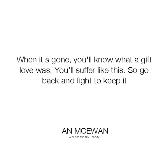 When it's gone, you'll know what a gift love was. You'll suffer like this. So go back and fight to keep it