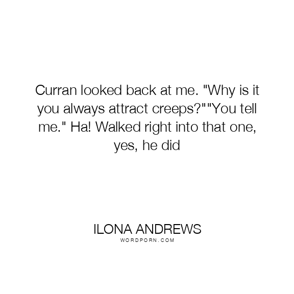 Curran looked back at me. "Why is it you always attract creeps?""You tell me." Ha! Walked right into that one, yes, he did