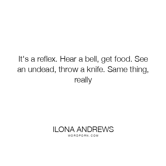 It's a reflex. Hear a bell, get food. See an undead, throw a knife. Same thing, really