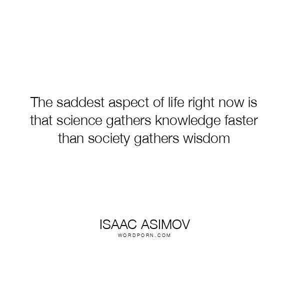 The saddest aspect of life right now is that science gathers knowledge faster than society gathers wisdom