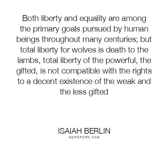 Both liberty and equality are among the primary goals pursued by human beings throughout many centuries; but total liberty for wolves is death to the lambs, total liberty of the powerful, the gifted, is not compatible with the rights to a decent existence of the weak and the less gifted