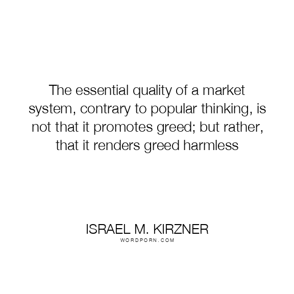 The essential quality of a market system, contrary to popular thinking, is not that it promotes greed; but rather, that it renders greed harmless