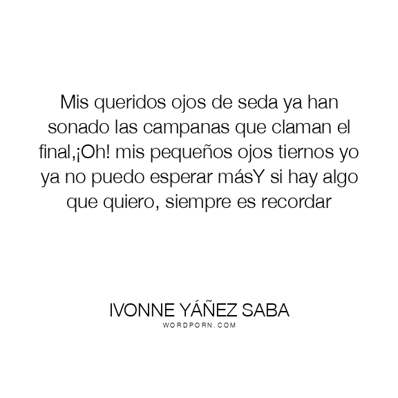 Mis queridos ojos de seda ya han sonado las campanas que claman el final,¡Oh! mis pequeños ojos tiernos yo ya no puedo esperar másY si hay algo que quiero, siempre es recordar
