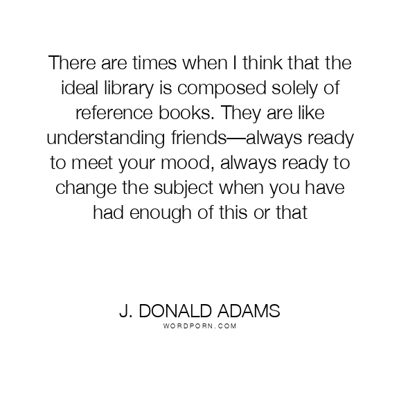 There are times when I think that the ideal library is composed solely of reference books. They are like understanding friends—always ready to meet your mood, always ready to change the subject when you have had enough of this or that
