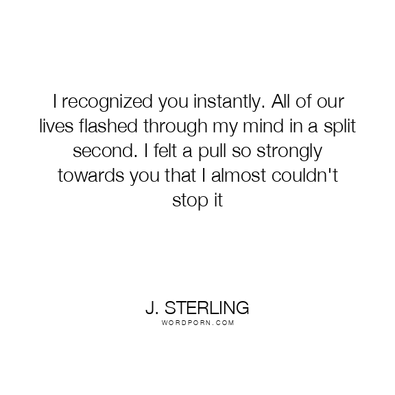 I recognized you instantly. All of our lives flashed through my mind in a split second. I felt a pull so strongly towards you that I almost couldn't stop it