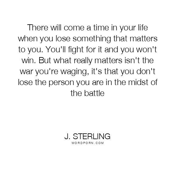 There will come a time in your life when you lose something that matters to you. You'll fight for it and you won't win. But what really matters isn't the war you're waging, it's that you don't lose the person you are in the midst of the battle