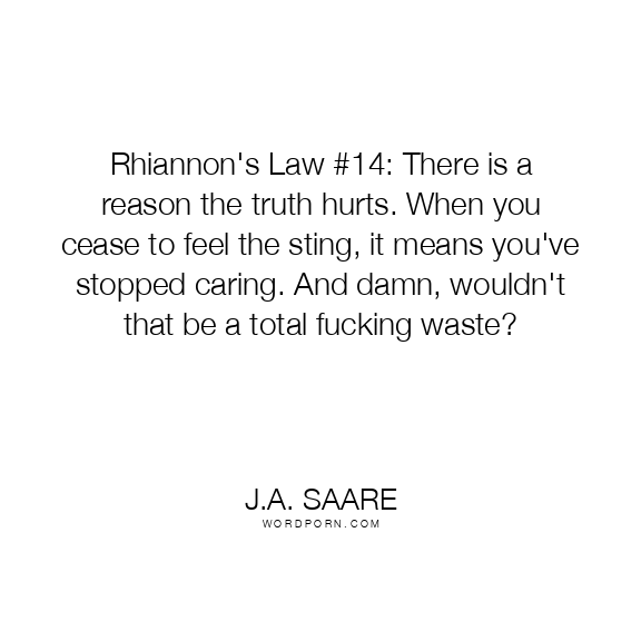 Rhiannon's Law #14: There is a reason the truth hurts. When you cease to feel the sting, it means you've stopped caring. And damn, wouldn't that be a total fucking waste?