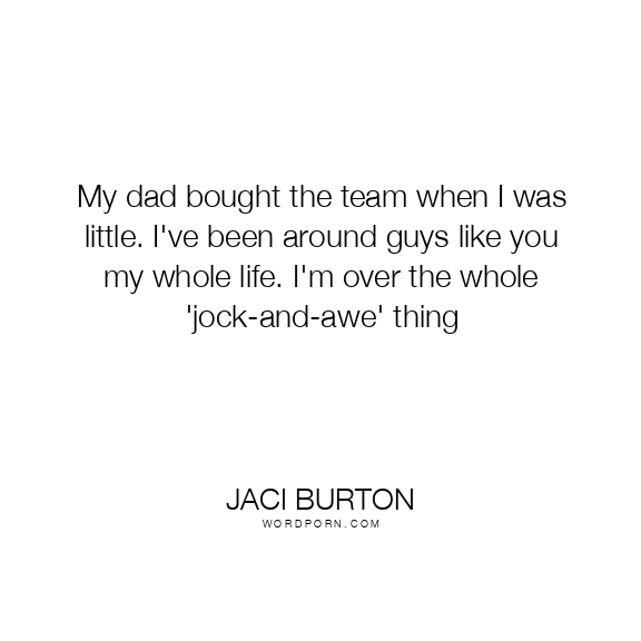Jaci Burton quote. My dad bought the team when I was little. I've been around guys like you my whole life. I'm over the whole 'jock-and-awe' thing