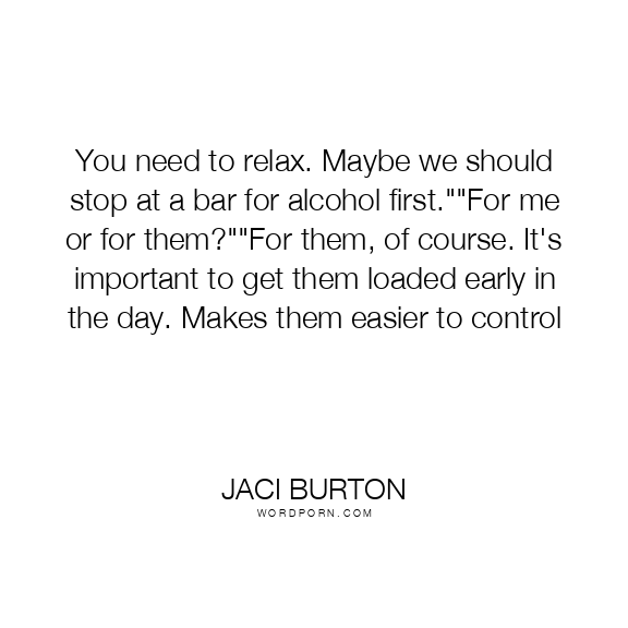 Jaci Burton quote. You need to relax. Maybe we should stop at a bar for alcohol first.