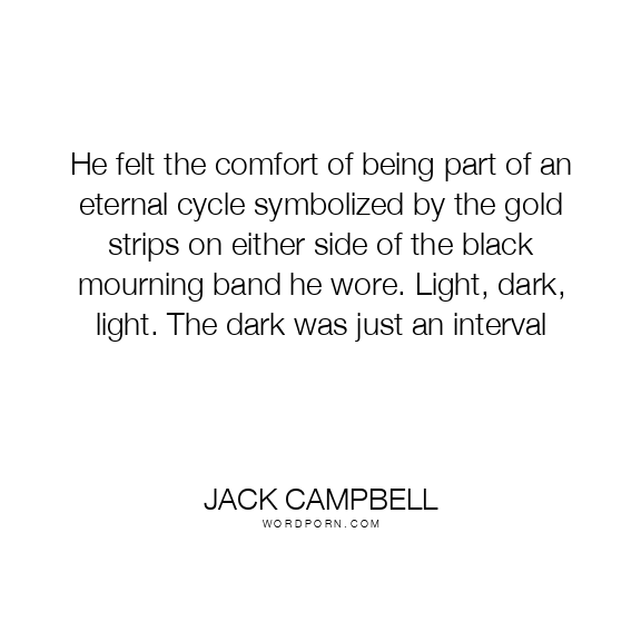 He felt the comfort of being part of an eternal cycle symbolized by the gold strips on either side of the black mourning band he wore. Light, dark, light. The dark was just an interval