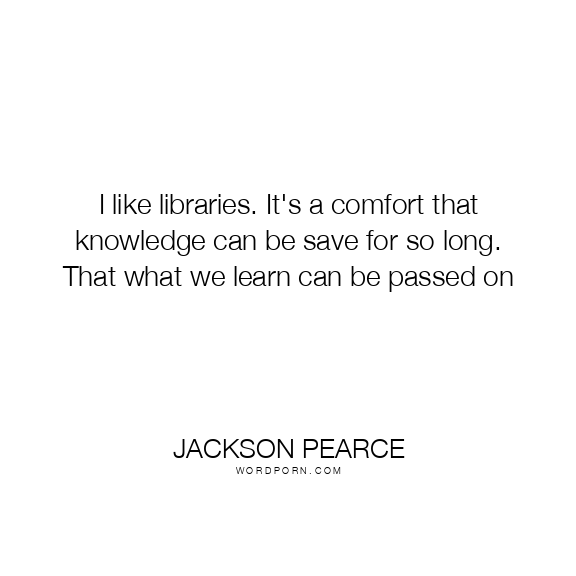 I like libraries. It's a comfort that knowledge can be save for so long. That what we learn can be passed on
