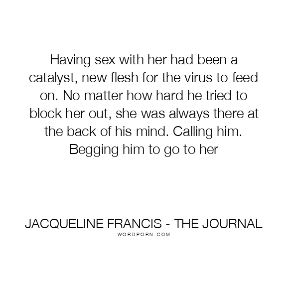 Having sex with her had been a catalyst, new flesh for the virus to feed on. No matter how hard he tried to block her out, she was always there at the back of his mind. Calling him. Begging him to go to her