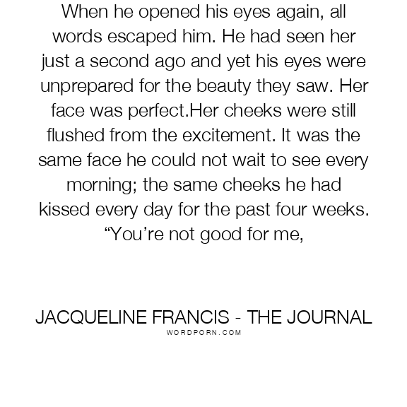 When he opened his eyes again, all words escaped him. He had seen her just a second ago and yet his eyes were unprepared for the beauty they saw. Her face was perfect.Her cheeks were still flushed from the excitement. It was the same face he could not wait to see every morning; the same cheeks he had kissed every day for the past four weeks. “You’re not good for me,