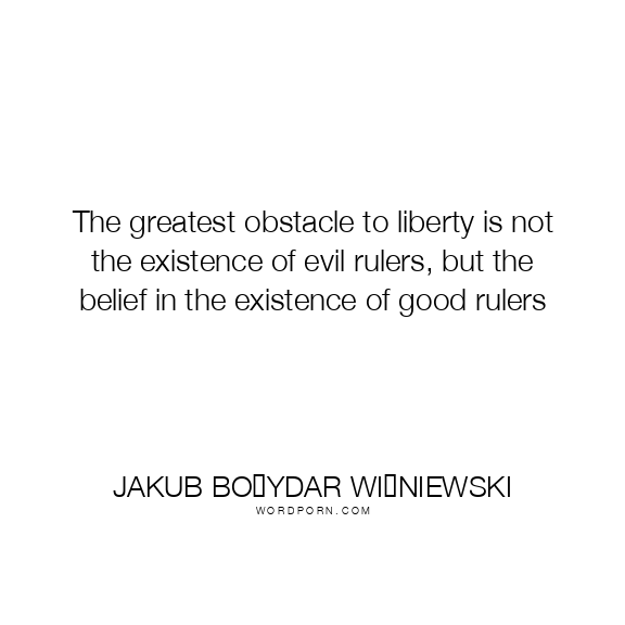 The greatest obstacle to liberty is not the existence of evil rulers, but the belief in the existence of good rulers