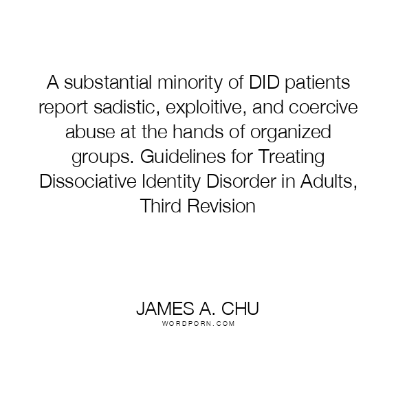 A substantial minority of DID patients report sadistic, exploitive, and coercive abuse at the hands of organized groups. Guidelines for Treating Dissociative Identity Disorder in Adults, Third Revision