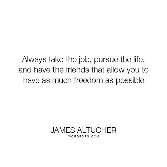 Always take the job, pursue the life, and have the friends that allow you to have as much freedom as possible