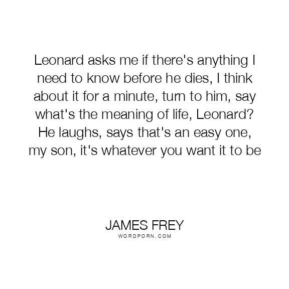 Leonard asks me if there's anything I need to know before he dies, I think about it for a minute, turn to him, say what's the meaning of life, Leonard? He laughs, says that's an easy one, my son, it's whatever you want it to be