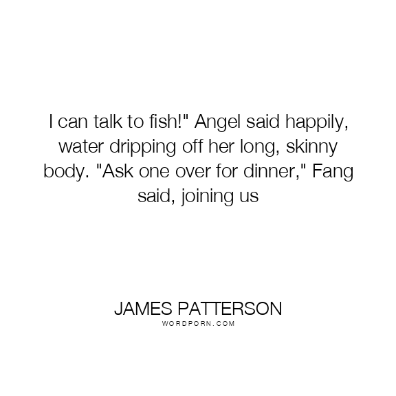 I can talk to fish!" Angel said happily, water dripping off her long, skinny body. "Ask one over for dinner," Fang said, joining us